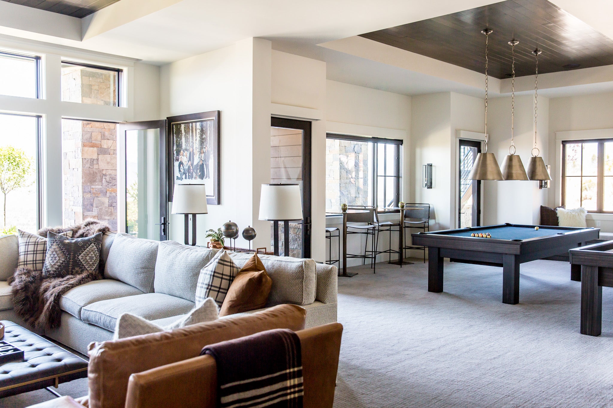 Are you a gaming enthusiast looking to level up your living room? Look no further! In this design journal, we’ll show you one of our favorite design projects ~ The Haven Basement Retreat! This home was featured and a show favorite in the Park City Showcase of Homes. Read on to learn how we got our clients' living room ready for every big game! First we started with a thorough inventory of all the essential items that our clients wanted for their family and friends to enjoy. Some of their top priorities were a pool table, shuffleboard, big screen TV, pub tables, bar area and more!
